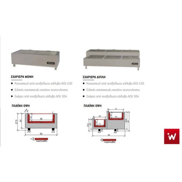 Επαγγελματική ανοξείδωτη ψησταριά επιτραπέζια μονή κάρβουνου VKN-CGS5 150X50X27 εκ