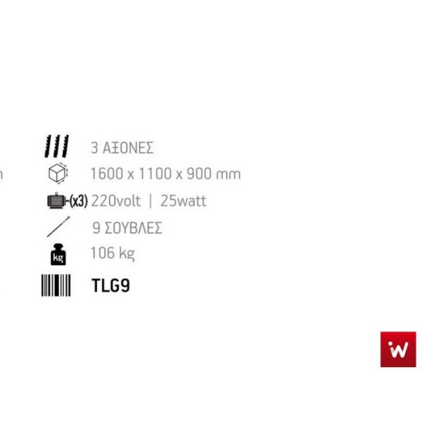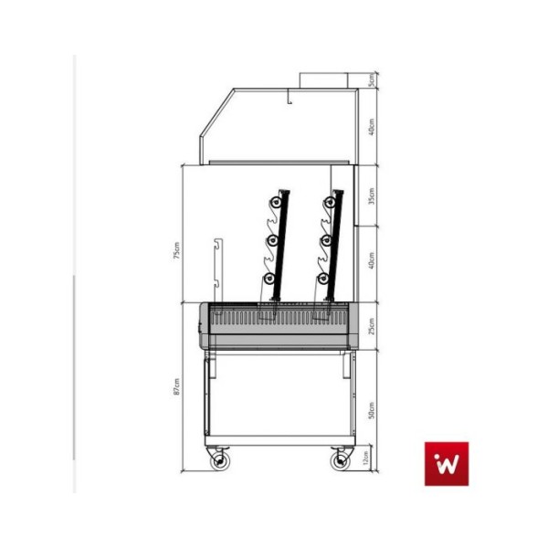 Επαγγελματική ανοξείδωτη επιδαπέδια ψησταριά κάρβουνου με σούβλες τρείς ατέρμονες VKN-LG9 160χ110χ154 εκ