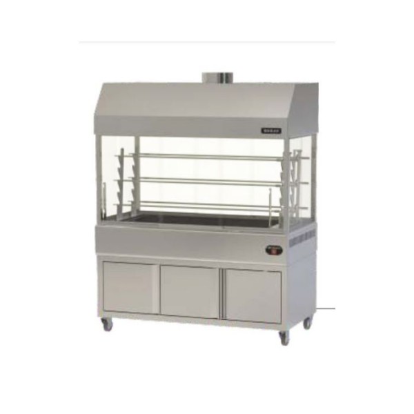 Επιδαπέδια ψησταριά κάρβουνου με σούβλες τρείς ατέρμονες και χοάνη και τεσσερις πλευρές τζάμια VKN-LGHGD9 180χ110χ200 εκ