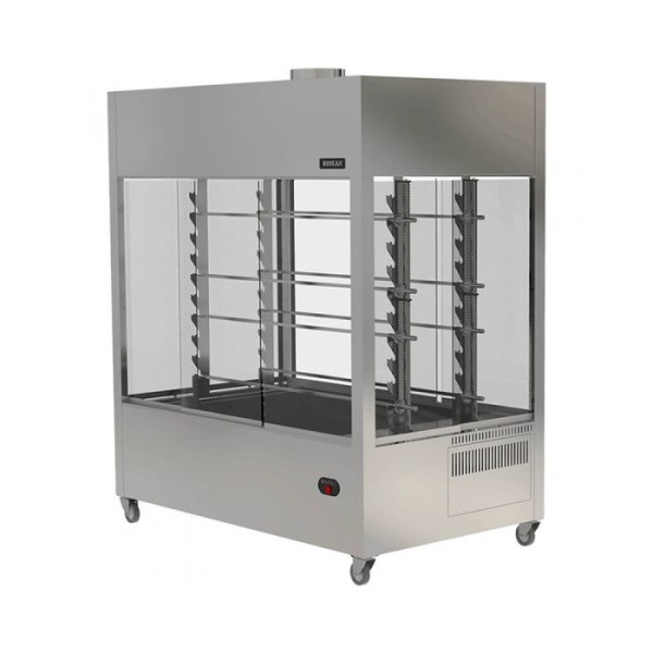Επιδαπέδια ψησταριά κάρβουνου με σούβλες δύο ατέρμονες και χοάνη και 2 πλευρές τζάμια ΙΝΟΧ πίσω VKN-LGHG6 180χ81χ200 εκ
