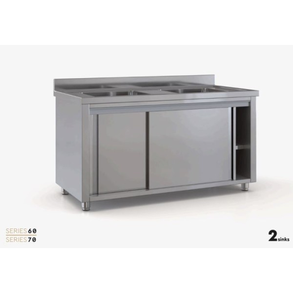 Επαγγελματική ανοξείδωτη λάντζα κλειστή 160χ70χ87 με 2 γούρνες 50χ50χ30 εκ ID-LANK160.2