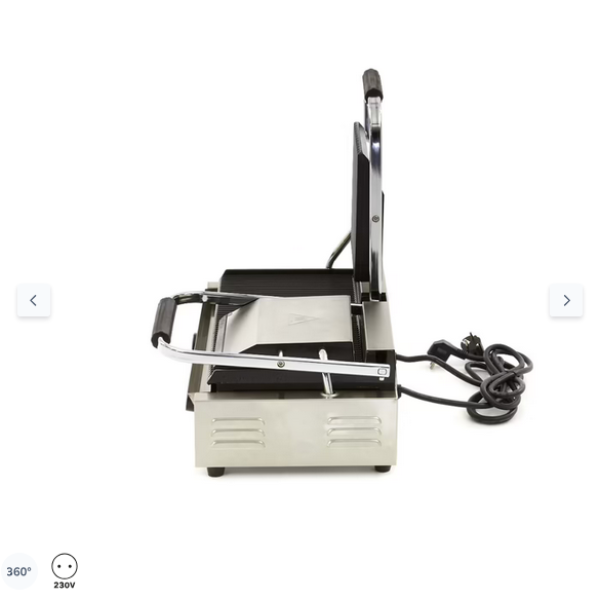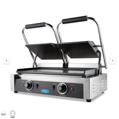 Στις λείες, βαριές πλάκες ψησίματος από χυτοσίδηρο μπορείτε να ψήσετε και να τηγανίσετε τα πιο νόστιμα σάντουιτς, πανίνι και άλλα πιάτα. Επειδή η σχάρα επαφής διαθέτει διπλές πλάκες ψησίματος, μπορείτε εύκολα να ετοιμάσετε φαγητό για μεγάλες ομάδες ατόμων. Είναι ιδανική για να σερβίρετε ψάρια, λαχανικά ή κρέας. Αυτή η επαγγελματική σχάρα επαφής είναι απαραίτητη σε κάθε κουζίνα εστίασης και, χάρη στη στιβαρή κατασκευή της, η συσκευή θα διαρκέσει πολύ καιρό.