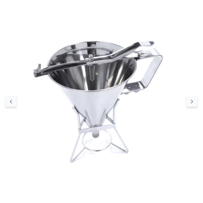Να γεμίζετε φόρμες ψησίματος, να φτιάχνετε τηγανίτες ή κρέπες ή να αδειάζετε το μείγμα σε φορμάκια για cupcakes και muffin χωρίς χάος Αυτό είναι πολύ εύκολο να το κάνετε με αυτόν τον επαγγελματικό διανομέα ζυμαρικών. Ο διανομέας ζυμαρικών είναι κατασκευασμένος από ανοξείδωτο ατσάλι και έχει χωρητικότητα 1,6 λίτρων. Είναι ιδανικός για την εύκολη και τέλεια δοσομετρική ρίψη ζύμης σε όλα τα είδη διαφορετικών φορμών ψησίματος. Με αυτό το βοήθημα κουζίνας δεν εργάζεστε μόνο πολύ τακτοποιημένα, αλλά και υγιεινά, επειδή δεν έρχεστε σε επαφή με το ζυμάρι.