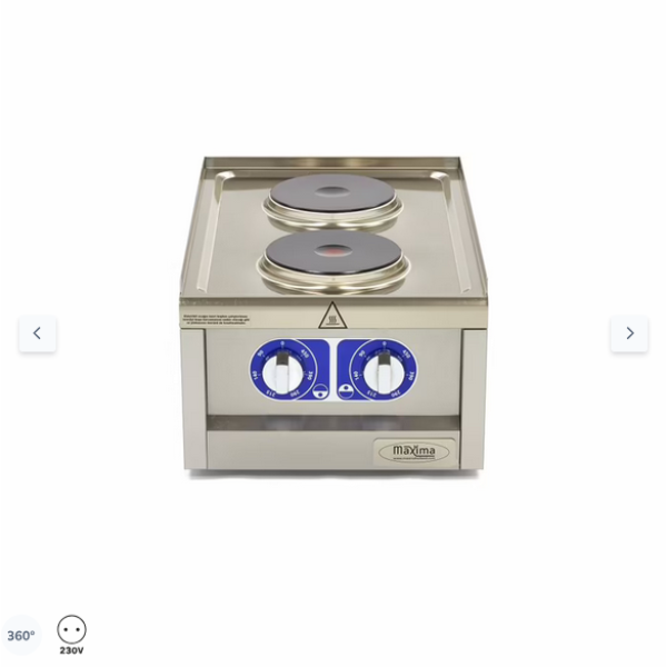 Αυτή η εξαιρετικά ανθεκτική κατασκευή διαθέτει μεγάλα περιστροφικά κουμπιά που λειτουργούν ανεξάρτητα το ένα από το άλλο. Οι εστίες είναι κατασκευασμένες από χυτοσίδηρο, ώστε οι κατσαρόλες και τα τηγάνια που τοποθετούνται στην εστία να θερμαίνονται ομοιόμορφα. Μια εξαιρετικά ισχυρή συσκευή κουζίνας λόγω της μονοκόμματης εστίας. Η συσκευή διαθέτει διακόπτη ασφαλείας για την αποφυγή υπερθέρμανσης. Η θερμοκρασία μπορεί να ρυθμιστεί σε έξι στάδια μεταξύ 90 και 450ºC. Αυτή η κουζίνα διατίθεται επίσης σε μοντέλο με τέσσερις εστίες. Εάν δεν θέλετε να τοποθετήσετε την εστία σε τραπέζι, παραγγείλετε τη βάση από ανοξείδωτο χάλυβα που είναι κατάλληλη για αυτή τη συσκευή.