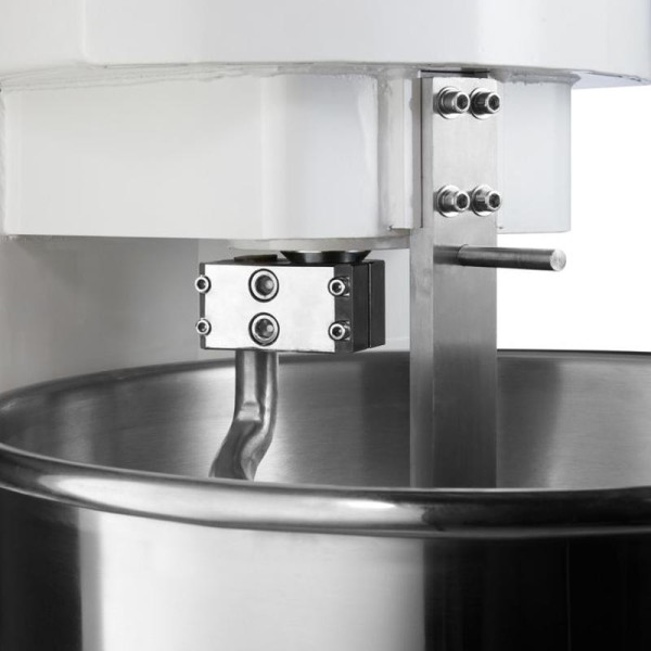 Όταν εργάζεστε με μεγάλες ποσότητες ζύμης, χρειάζεστε ένα επαγγελματικό και ισχυρό μίξερ ζύμης. Με αυτό το μηχάνημα, το οποίο έχει μεγάλη χωρητικότητα 100 λίτρων, μπορείτε να αναμίξετε πολλά συστατικά σε μια λεία και νόστιμη ζύμη. Αυτό συμβάλλει στην επιτάχυνση του χρόνου προετοιμασίας, ώστε να μπορείτε να επικεντρωθείτε στην παρασκευή ψημένων προϊόντων, όπως ψωμί και βάσεις πίτσας. Η ελάχιστη ποσότητα αλεύρου που μπορείτε να επεξεργαστείτε σε αυτό το μίξερ ζύμης είναι 30kg. Μπορεί να χωρέσει έως και 40 κιλά αλεύρι και να φτιάξει 64 κιλά ζύμης.