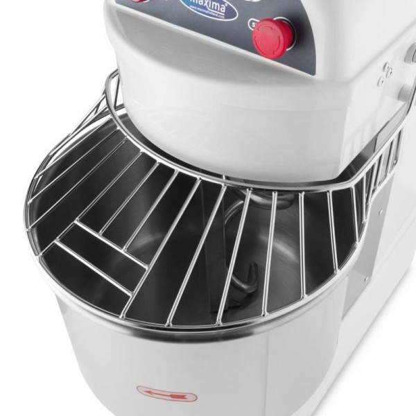 Αυτό το μίξερ ζύμης είναι πολύ φιλικό προς το χρήστη. Μπορείτε να επιλέξετε μεταξύ δύο ταχυτήτων χρησιμοποιώντας τα κουμπιά στον πίνακα: αργό ζύμωμα ή γρήγορο ζύμωμα. Η ασφάλεια είναι επίσης απαραίτητη όταν εργάζεστε σε οποιαδήποτε κουζίνα εστίασης. Γι' αυτό το μίξερ διαθέτει ενσωματωμένο διακόπτη ασφαλείας που αποτρέπει την υπερθέρμανση του κινητήρα. Έτσι, η συσκευή απενεργοποιείται μόλις υπερθερμανθεί. Για να αποτραπεί η είσοδος αντικειμένων ή χεριών στο μπολ ανάμειξης κατά τη χρήση, το μίξερ είναι εξοπλισμένο με ένα προστατευτικό πλέγμα. Μέχρι να κλείσει εντελώς αυτό το προστατευτικό πλέγμα, το μίξερ ζύμης δεν θα ξεκινήσει. Το μίξερ συνοδεύεται από ένα γάντζο ζύμης που, όπως και το μπολ ανάμειξης, περιστρέφεται γύρω από τον άξονά του κατά το ζύμωμα. Αυτό το ισχυρό μίξερ ζύμης είναι επίσης εξοπλισμένο με προστασία υπερφόρτωσης, ώστε το μπολ ανάμειξης να μην μπορεί ποτέ να υπερφορτωθεί.