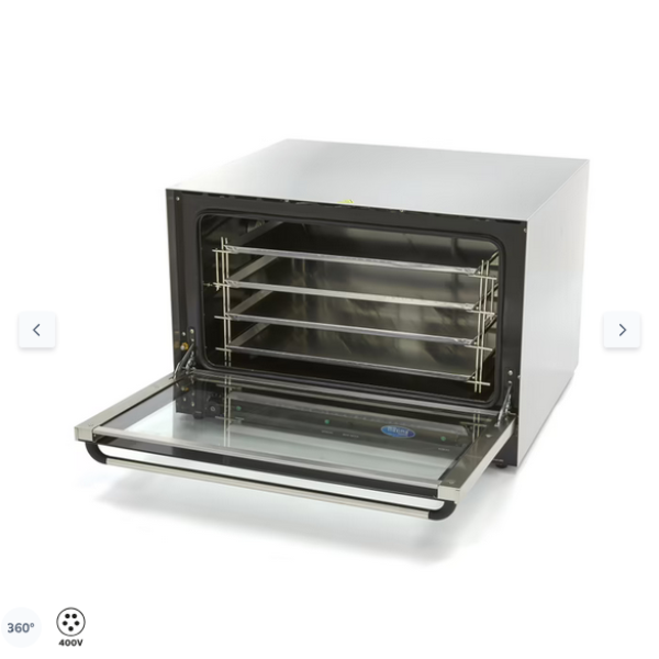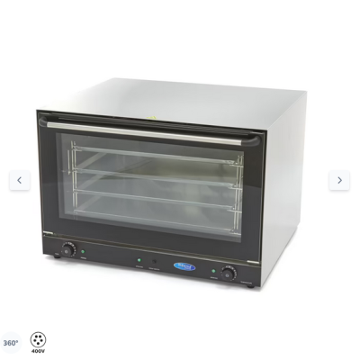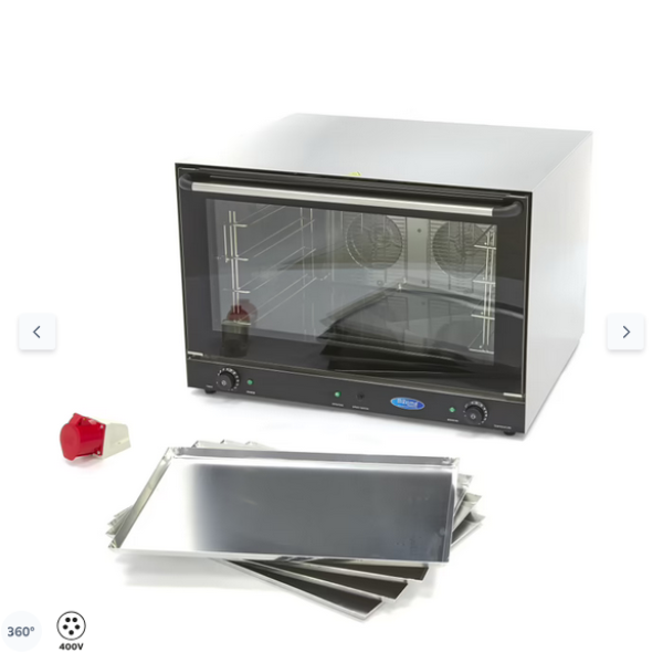 Ο φούρνος συναγωγής συνοδεύεται από τέσσερις δίσκους 60 x 40 cm, οι οποίοι ταιριάζουν απόλυτα στο εσωτερικό του φούρνου. Η απόσταση μεταξύ των δίσκων είναι 8 cm. Μπορείτε να χειριστείτε εύκολα το φούρνο με τα αναλογικά πλήκτρα. Διαθέτει επίσης θερμοστάτη για θερμοκρασίες μεταξύ 0 και 300ºC. Οι ενδεικτικές λυχνίες δείχνουν πότε ο φούρνος έχει φτάσει στη σωστή θερμοκρασία. Με τον ρυθμιζόμενο χρονοδιακόπτη, μπορείτε να ρυθμίσετε χρόνους ψησίματος μεταξύ 0 και 120 λεπτών. Επιπλέον, πρόκειται για ένα ανθεκτικό μοντέλο χάρη στην κατασκευή από ανοξείδωτο χάλυβα και τον εμαγιέ εσωτερικό θάλαμο του φούρνου.