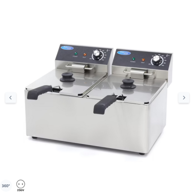 Το μεγάλο πλεονέκτημα μιας ηλεκτρικής φριτέζας με διπλό καλάθι των 8 λίτρων το καθένα είναι ότι η ικανότητα τηγανίσματος διπλασιάζεται αμέσως. Έτσι, μπορείτε να φτιάχνετε ταυτόχρονα τηγανητές πατάτες, σνακ και άλλα τηγανητά φαγητά, χωρίς να χρειάζεται να περιμένετε. Και τα δύο θερμαντικά στοιχεία διαθέτουν ρυθμιζόμενο θερμοστάτη που σας επιτρέπει να ρυθμίσετε μια θερμοκρασία μεταξύ 50°C και 200°C για κάθε φριτέζα. Η πορτοκαλί ενδεικτική λυχνία εξασφαλίζει ότι τα προϊόντα τοποθετούνται στο καυτό λάδι ακριβώς στη σωστή θερμοκρασία.
