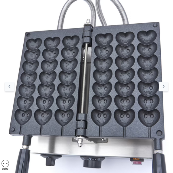 Οι βάφλες γλειφιτζούρι είναι πολύ δημοφιλείς. Με αυτή τη συσκευή παρασκευής βάφλας, μπορείτε να ψήνετε τρεις νόστιμες βάφλες σε ξυλάκι ταυτόχρονα. Έχουν σχήμα σαν επτά καρδιές στοιβαγμένες η μία πάνω στην άλλη, με ένα χαρούμενο emoji smiley στην κορυφή. Αυτό είναι εγγυημένο ότι θα φέρει ένα χαμόγελο στο πρόσωπο οποιουδήποτε! Και σε εσάς επίσης, γιατί χάρη στην εύκολη λειτουργία και τον στιβαρό σχεδιασμό, μπορείτε να απολαμβάνετε την παρασκευή αυτών των βάφλας για πολύ καιρό.