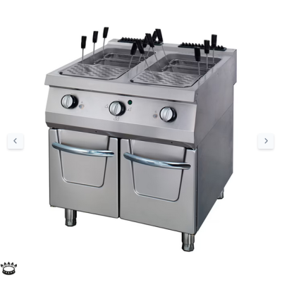 Με αυτή την κομψή, υψηλής ποιότητας κουζίνα ζυμαρικών, μπορείτε να μαγειρέψετε ένα πλήρες γεύμα ζυμαρικών μέσα σε λίγα λεπτά. Με χωρητικότητα 2 x 40 λίτρων και έξι ανοξείδωτα καλάθια, μπορείτε να ετοιμάζετε πολλά πιάτα ταυτόχρονα. Μπορείτε να μαγειρέψετε διάφορα είδη ζυμαρικών, καθώς και άλλα τρόφιμα όπως ρύζι, πατάτες, λαχανικά ή ζυμαρικά.