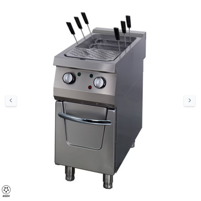 Τα θερμαντικά στοιχεία στη λεκάνη νερού είναι ενισχυμένα και εξασφαλίζουν γρήγορη και αποτελεσματική θέρμανση του νερού. Χρησιμοποιώντας τον θερμοστάτη ασφαλείας, μπορείτε να ρυθμίσετε θερμοκρασίες μεταξύ 20 και 200°C. Η αποστράγγιση με χειροκίνητη σφαιρική βαλβίδα καθιστά γρήγορη και εύκολη την εκκένωση της λεκάνης νερού. Η κουζίνα ζυμαρικών είναι επίσης εξοπλισμένη με ηλεκτρομαγνητική βαλβίδα για κρύο και ζεστό νερό.