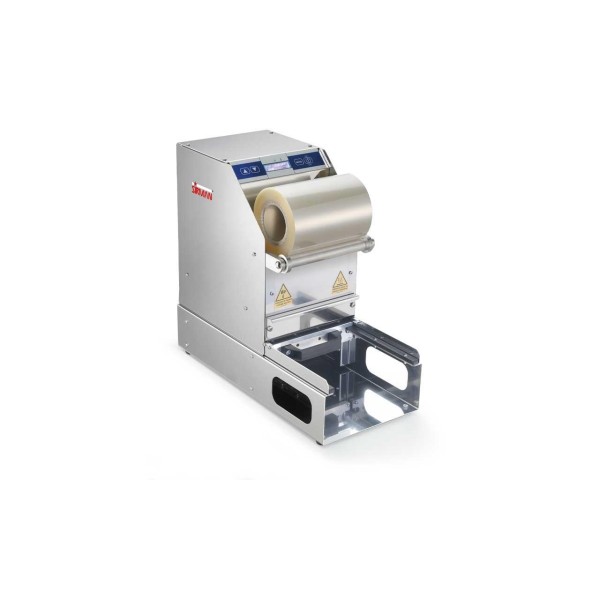 Πρακτικό και στιβαρό αυτόματο θερμοκολλητικό μηχάνημα - Δομή από ανοξείδωτο ατσάλι - Διαθέτει μηχανοκίνητη πλάκα στεγανοποίησης αλουμινίου με επικάλυψη τεφλόν, η οποία καθοδηγείται σε 4 σημεία για ομοιόμορφη σφράγιση σε ολόκληρη την επιφάνεια. - Ρυθμιζόμενη θερμοκρασία και χρόνος σφράγισης. - Ηλεκτρονικός έλεγχος με καταμέτρηση δίσκων - Το δοχείο μπορεί επίσης να κατασκευαστεί σύμφωνα με τις προδιαγραφές του πελάτη - Πλήρως αφαιρούμενο συρτάρι με αισθητήρα για αυτόματη ενεργοποίηση του κύκλου σφράγισης - Το μηχάνημα μπορεί επίσης να χρησιμοποιηθεί για τη σφράγιση πολύ ψηλών δίσκων που χρησιμοποιούνται σε καταστήματα ντελικατέσεν κ.λπ. - Αυτόματη κοπή της μεμβράνης. - Διατίθενται μήτρες στην τυπική έκδοση ή κατασκευασμένες σύμφωνα με το σχέδιο του πελάτη. Επιλογές: - Μεμβράνη επικάλυψης δίσκου - Στάνταρ δίσκοι mm 137x95 h.63 mm 190x137 h.72 mm 230x190 h.65 mm 260x190 h.65 - Καλούπια των διαθέσιμων δίσκων.