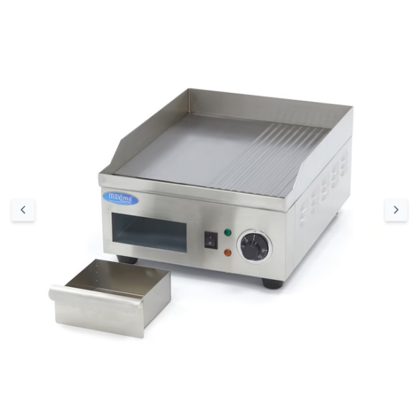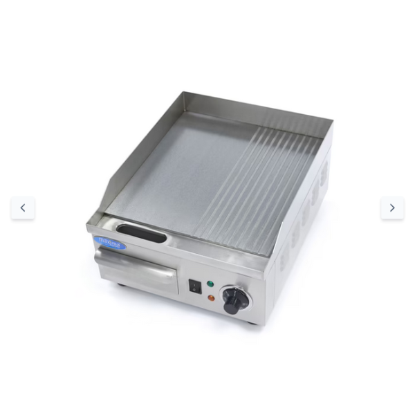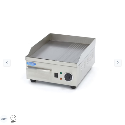 Μπορείτε να ρυθμίσετε τη θερμοκρασία σε αυτό το ταψί μεταξύ 50 και 300°C. Η συσκευή διαθέτει επίσης μια ενδεικτική λυχνία που δείχνει πότε η σχάρα είναι σε θερμοκρασία και έτοιμη για χρήση. Παρά τις υψηλές θερμοκρασίες, αυτή η επαγγελματική σχάρα είναι ασφαλής στη χρήση. Είναι εξοπλισμένο με υψηλά προστατευτικά πιτσιλίσματος από ανοξείδωτο ατσάλι για την αποφυγή πιτσιλίσματος λαδιού. Η ψησταριά είναι πολύ φιλική προς το χρήστη. Ενεργοποιήστε το με το διακόπτη, λαδώστε την επιφάνεια της σχάρας με λάδι και όταν επιτευχθεί η σωστή θερμοκρασία, τοποθετήστε τα προϊόντα πάνω στη σχάρα.