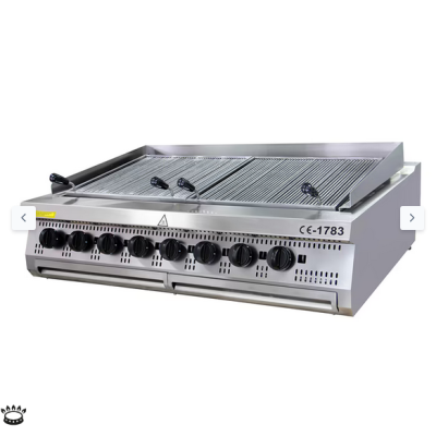 Θέλετε να προσθέσετε νόστιμη γεύση μπάρμπεκιου σε κρέας, ψάρι ή λαχανικά Με μεγάλες διαστάσεις Π120 x Π90 cm και όχι λιγότερες από οκτώ ζώνες μαγειρέματος, αυτός ο στιβαρός ψησταριάς αερίου μπορεί να χειριστεί οτιδήποτε του πετάξετε. Χάρη στις κεκλιμένες αυλακώσεις στην πλάκα σχάρας, το λίπος στάζει πάνω από την πηγή θερμότητας χωρίς να αγγίζει ποτέ τις φλόγες. Ο καπνός του προσδίδει την αυθεντική γεύση μπάρμπεκιου. Λειτουργεί με αέριο και όχι με κάρβουνα, γεγονός που εξοικονομεί πολλές εργασίες καθαρισμού. Οι δύο πάνω σχάρες ("σιδερένιες σχάρες") δεν περιλαμβάνονται στο βασικό εξοπλισμό, αλλά μπορούν να παραγγελθούν ως αξεσουάρ.
