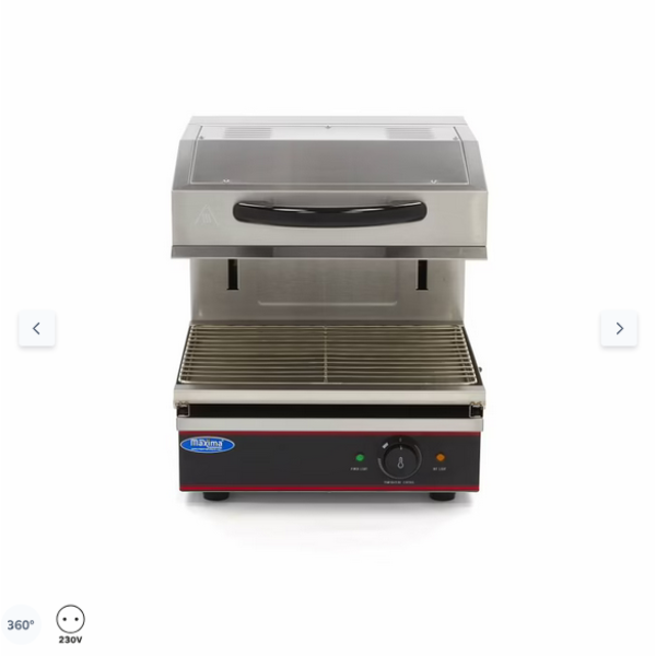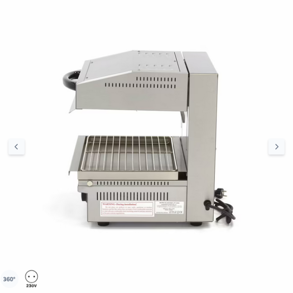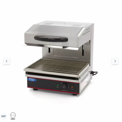 Αυτή η σχάρα σαλαμάνδρα είναι κατάλληλη για ψήσιμο στη σχάρα, ογκρατέν, γλάσο, προθέρμανση ή απόψυξη τροφίμων και προϊόντων. Χάρη στην ομοιόμορφη θέρμανσή της, μπορείτε να αφήσετε τη συσκευή σε σταθερή χαμηλή θερμοκρασία. Αυτή η σχάρα είναι πολύ βολική στις επαγγελματικές κουζίνες, καθώς παρέχει ένα μέρος για να διατηρούνται τα πιάτα ζεστά μετά την προετοιμασία. Η θερμοκρασία μπορεί να ρυθμιστεί με το περιστροφικό κουμπί, το οποίο σας επιτρέπει να διατηρείτε τα γεύματα ζεστά και να μαγειρεύετε αργά τα ψάρια ή το κρέας.