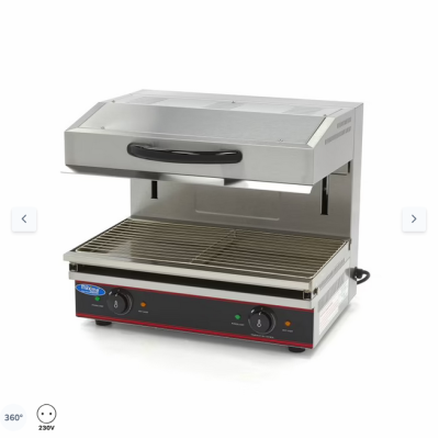 Αυτή η σχάρα σαλαμάνδρα είναι κατάλληλη για ψήσιμο στη σχάρα, ογκρατέν, γλάσο, προθέρμανση ή απόψυξη τροφίμων και προϊόντων. Χάρη στην ομοιόμορφη θέρμανσή της, μπορείτε να αφήσετε τη συσκευή σε σταθερή χαμηλή θερμοκρασία. Αυτή η σχάρα είναι πολύ βολική στις επαγγελματικές κουζίνες, καθώς παρέχει ένα μέρος για να διατηρούνται τα πιάτα ζεστά μετά την προετοιμασία. Η θερμοκρασία μπορεί να ρυθμιστεί με το περιστροφικό κουμπί, το οποίο σας επιτρέπει να διατηρείτε τα γεύματα ζεστά και να μαγειρεύετε αργά τα ψάρια ή το κρέας.