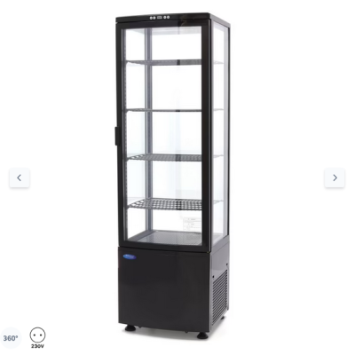 Αυτό το υψηλής ποιότητας επαγγελματικό ψυγείο βιτρίνας έχει μεγάλη χωρητικότητα 235 λίτρων και προσφέρει χώρο για την προβολή αρκετών τροφίμων. Η δυνατότητα προβολής των προϊόντων σας είναι σημαντική στην επιχείρηση τροφίμων, καθώς οι πελάτες επιθυμούν να βλέπουν τις επιλογές που έχουν. Χάρη στα μεγάλα παράθυρα σε κάθε πλευρά και τον ενεργειακά αποδοτικό εσωτερικό φωτισμό LED, τα προϊόντα θα ξεχωρίζουν. Αυτή η ψυχόμενη βιτρίνα διαθέτει τέσσερα ρυθμιζόμενα ράφια. Επιπλέον, μπορείτε να παραγγείλετε περισσότερα ράφια μέσω της ιστοσελίδας μας, αν θέλετε να αυξήσετε ακόμη περισσότερο τη χωρητικότητα του ψυγείου. Το κλείδωμα της βιτρίνας είναι επίσης εφικτό με την ενσωματωμένη κλειδαριά, η οποία συνοδεύεται από δύο κλειδιά.