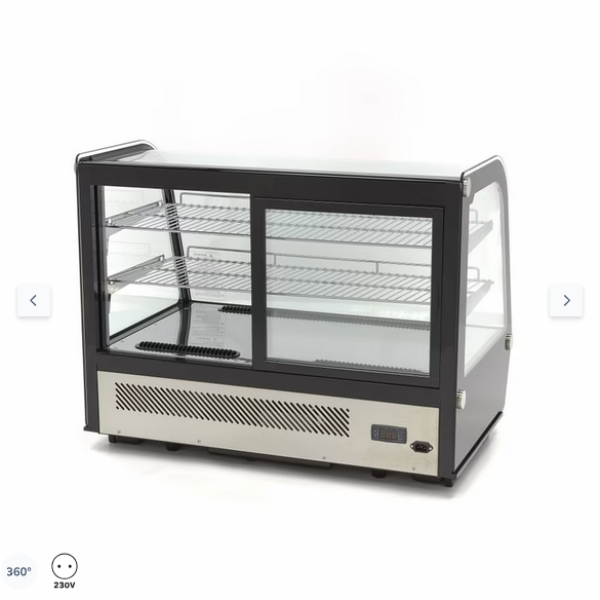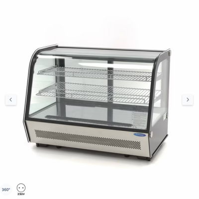 Το ψυγείο υψηλής ποιότητας διαθέτει μεγάλη χωρητικότητα 160 λίτρων και είναι όμορφα φινιρισμένο. Είναι ιδανικό για χρήση σε εστιατόρια, ξενοδοχεία, καφετέριες και οποιαδήποτε άλλη εγκατάσταση εστίασης όπου πρέπει να προβάλλετε τα τρόφιμα. Διαθέτει δύο χρωμιωμένα ράφια που ρυθμίζονται σε ύψος, ώστε να μπορείτε να το προσαρμόσετε στις ανάγκες σας. Περιλαμβάνει επίσης παράθυρα με διπλά τζάμια και ενσωματωμένο φωτισμό LED στο εσωτερικό του. Αυτό το καθιστά κατάλληλο για την προβολή κέικ, σοκολάτας και άλλων σνακ για τους πελάτες και τους επισκέπτες. Στο πίσω μέρος υπάρχουν δύο συρόμενες πόρτες, ώστε τα αντικείμενα να μπορούν να προστεθούν ή να αφαιρεθούν γρήγορα και εύκολα ανάλογα με τις ανάγκες.