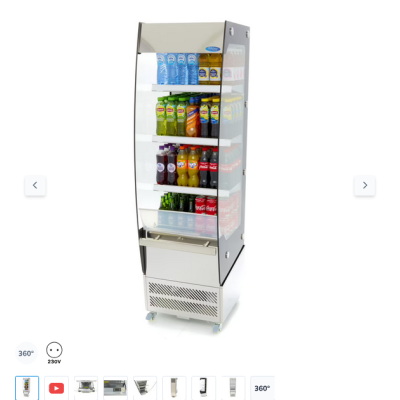 Ένα ανοιχτό ψυγείο είναι ιδανικό για χρήση σε οποιαδήποτε εγκατάσταση εστίασης, ειδικά σε αυτές που προσφέρουν δυνατότητα αυτοεξυπηρέτησης. Τα προϊόντα παρουσιάζονται με ελκυστικό και επαγγελματικό τρόπο σε τρία διαφορετικά ράφια. Ο ενσωματωμένος φωτισμός LED βάζει κυριολεκτικά τα τρόφιμα και τα ποτά στο προσκήνιο, ώστε οι πελάτες να μπορούν να επιλέξουν τις δικές τους επιλογές. Τα ράφια είναι επίσης εξοπλισμένα με θήκες καρτών για την τοποθέτηση ετικετών τιμών. Επιπλέον, αυτό το ψυγείο ανοιχτής βιτρίνας διαθέτει δύο ρόδες με φρένα, ώστε να μπορεί να μετακινείται εύκολα. Διαθέτει χειρολαβή και προφυλακτήρα. Οι υαλοπίνακες στις πλευρές της βιτρίνας είναι διπλοί και οι καμπύλες γυάλινες πλάκες είναι τοποθετημένες σε περίβλημα από χρωμιωμένο χάλυβα.