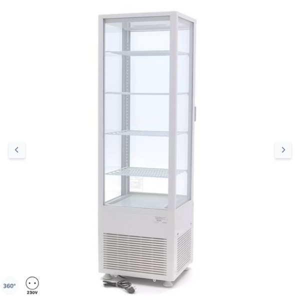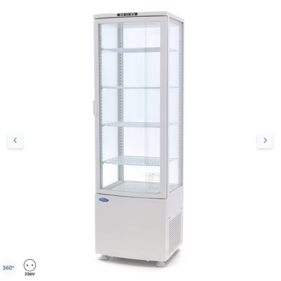 Αυτό το υψηλής ποιότητας επαγγελματικό ψυγείο βιτρίνας έχει μεγάλη χωρητικότητα 235 λίτρων και προσφέρει χώρο για την προβολή αρκετών τροφίμων. Η δυνατότητα προβολής των προϊόντων σας είναι σημαντική στην επιχείρηση τροφίμων, καθώς οι πελάτες επιθυμούν να βλέπουν τις επιλογές που έχουν. Χάρη στα μεγάλα παράθυρα σε κάθε πλευρά και τον ενεργειακά αποδοτικό εσωτερικό φωτισμό LED, τα προϊόντα θα ξεχωρίζουν. Αυτή η ψυχόμενη βιτρίνα διαθέτει τέσσερα ρυθμιζόμενα ράφια. Επιπλέον, μπορείτε να παραγγείλετε περισσότερα ράφια μέσω της ιστοσελίδας μας, αν θέλετε να αυξήσετε ακόμη περισσότερο τη χωρητικότητα του ψυγείου. Το κλείδωμα της βιτρίνας είναι επίσης εφικτό με την ενσωματωμένη κλειδαριά, η οποία συνοδεύεται από δύο κλειδιά.