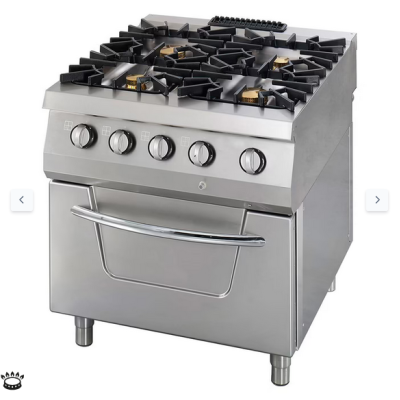 Εκτός από τη σόμπα τεσσάρων εστιών, αυτή η σόμπα αερίου διαθέτει επίσης έναν ευρύχωρο φούρνο αερίου. Ο στατικός θάλαμος του φούρνου είναι κατασκευασμένος από ανοξείδωτο ατσάλι, συμπεριλαμβανομένης της πόρτας που έχει πάχος 40 mm. Στο εσωτερικό του υπάρχει χρωμιωμένη σχάρα με τρία επίπεδα στην οποία μπορείτε να τοποθετήσετε δοχεία 2/1 GN. Μπορείτε να ρυθμίσετε θερμοκρασίες μεταξύ 100 και 300°C.