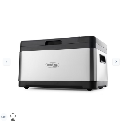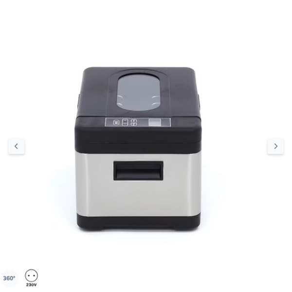 Σε αυτή την επαγγελματική συσκευή sous vide χωρητικότητας 8,5 λίτρων, το νερό στη δεξαμενή νερού θερμαίνεται σταδιακά. Τα τρόφιμα δεν καίγονται ούτε διαχωρίζονται, καθώς το νερό δεν μπορεί να ζεσταθεί περισσότερο από 90ºC. Τόσο η θερμοκρασία όσο και ο χρόνος μπορούν να ρυθμιστούν ξεχωριστά. Επιπλέον, αυτή η συσκευή sous vide έχει ακρίβεια 0,3ºCs. Χάρη στην ομοιόμορφη ροή του νερού, η υφή και τα θρεπτικά συστατικά διατηρούνται. Η οθόνη LCD είναι ψηφιακή και ο πίνακας ελέγχου είναι εύχρηστος χάρη στα πλήκτρα αφής. Η συσκευή sous vide είναι επίσης εξοπλισμένη με θερμική ασφάλεια και το καλώδιο τροφοδοσίας μπορεί να αφαιρεθεί.
