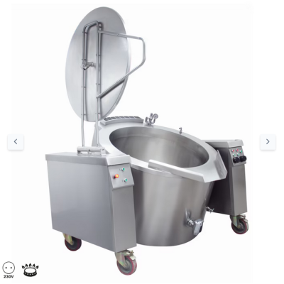 • Στρογγυλό τηγάνι βρασμού, κατασκευασμένο από ανοξείδωτο χάλυβα για εύκολο καθαρισμό + Σύστημα έμμεσης θέρμανσης με διπλό τοίχωμα: ιδανικό για υγρά πιάτα + Εξοπλισμένο με βαλβίδα αποστράγγισης και φαρδύ ακροφύσιο για εύκολη αφαίρεση των τροφίμων + Ηλεκτρομαγνητική βαλβίδα και περιστρεφόμενη χρωμιωμένη βρύση για πλήρωση με ζεστό ή κρύο νερό + Με τέσσερις τροχούς για εύκολη μετακίνηση - Απαιτείται σύνδεση αερίου