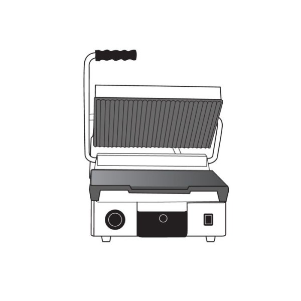 Επαγγελματική τοστιέρα μαντεμένια , με δομή από ανοξείδωτο χάλυβα και αντικολλητικές πλάκες από χυτοσίδηρο, κατασκευασμένη με ειδική επιφανειακή κεραμική επίστρωση που κάνει τις πλάκες ιδιαίτερα ανθεκτικές στα οξέα, το αλάτι και τη διάβρωση, ενώ επιτρέπει τον εύκολο και γρήγορο καθαρισμό.