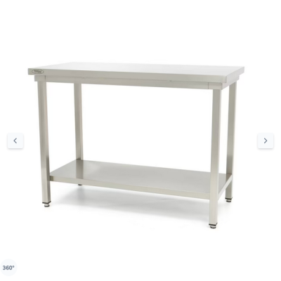 Αυτό το υψηλής ποιότητας τραπέζι εργασίας διαθέτει πάγκο εργασίας με αναδιπλωμένες άκρες. Οι άκρες είναι επίσης συγκολλημένες και γυαλισμένες. Ένα τακτοποιημένο τραπέζι εργασίας χωρίς αιχμηρές άκρες είναι το καλύτερο για ένα ασφαλές περιβάλλον εργασίας. Αυτό το τραπέζι εργασίας δεν διαθέτει υπερυψωμένη άκρη στο πίσω μέρος. Το ράφι από κάτω προσφέρει χώρο για επιπλέον αποθήκευση και είναι ιδανικό για τη στέγαση των εργαλείων κουζίνας. Βοηθά να διατηρείται ο χώρος εργασίας καθαρός και άδειος. Η βάση του τραπεζιού δεν μπορεί να ρυθμιστεί σε ύψος. Το τραπέζι εργασίας διατίθεται σε επίπεδη συσκευασία, πράγμα που σημαίνει ότι θα πρέπει να συναρμολογηθεί. Αυτό δεν αποτελεί καθόλου πρόβλημα με τα εργαλεία που παρέχονται και την πολύ απλή συναρμολόγηση. Μέσα σε 10 λεπτά, το τραπέζι εργασίας από ανοξείδωτο χάλυβα είναι έτοιμο για χρήση στην κουζίνα