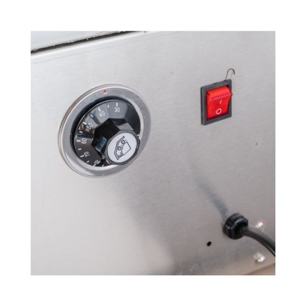 Επιτραπέζια θερμαινόμενη πανοραμική βιτρίνα - θερμοθάλαμος inox , χωρητικότητας 100 lt , με φωτισμό Led.