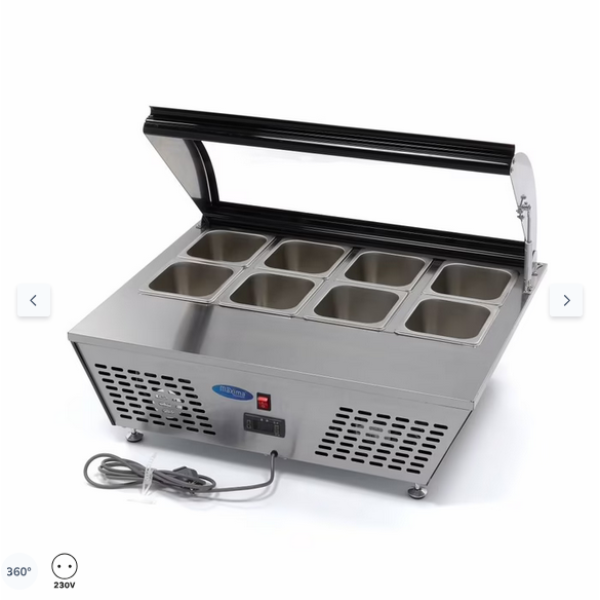 Ψυγείο - 700L - 3 ρυθμιζόμενα ράφια (2/1 GN) - ανοξείδωτος χάλυβας - με γυάλινη πόρτα