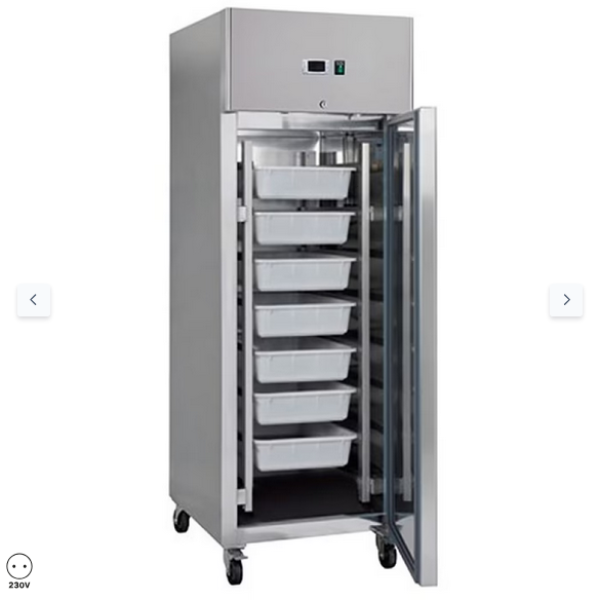Ψυγείο - 700L - 3 ρυθμιζόμενα ράφια (2/1 GN) - με ρόδες - Ανοξείδωτο χάλυβα