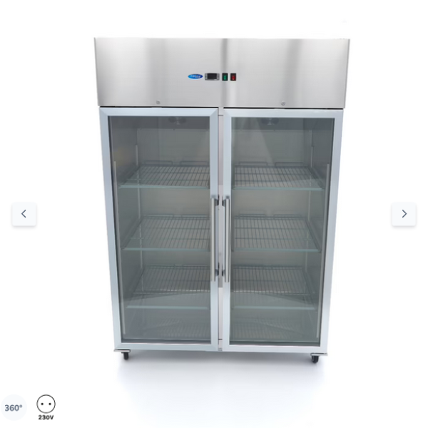 Ψυγείο - 1200L - 6 ρυθμιζόμενα ράφια (2/1 GN) - ανοξείδωτος χάλυβας - με γυάλινη πόρτα