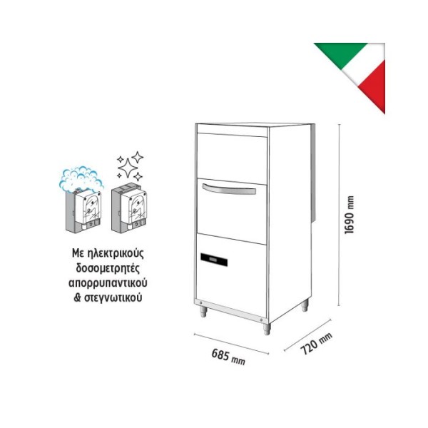 Πλυντήριο ποτηριών-πιάτων με αντλία εξαγωγής για καλάθι 50x50cm E1000 SLIM PS (PS2 H50-42N-DBS)
