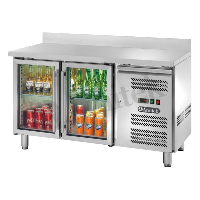 Αεριζόμενος ψυχόμενος πάγκος GN1/1 με γυάλινες πόρτες και υπερυψωμένη πλάτη AK2204TNG 136Χ70Χ95