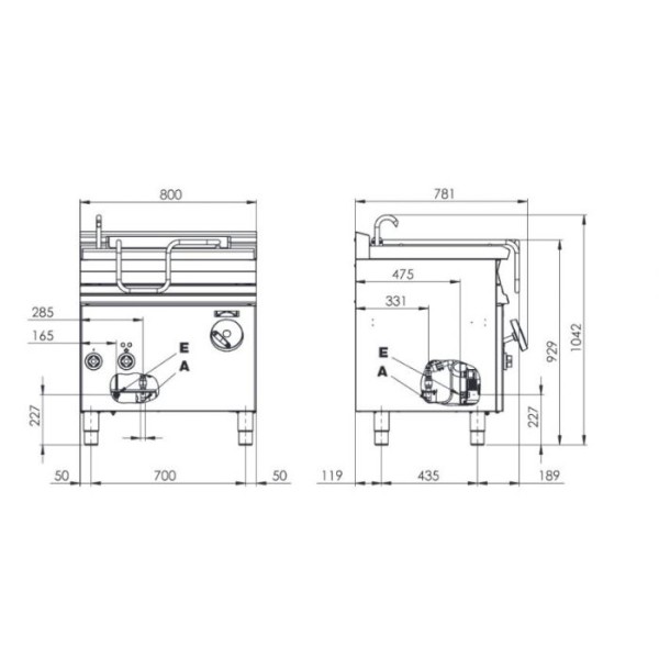 Ανατρεπόμενο τηγάνι ηλεκτρικό 50Lt BR50-78ETF/I 800x705x900