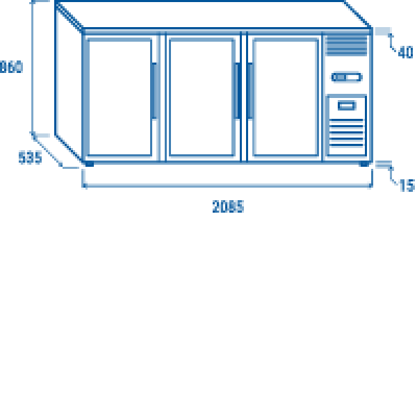 BACK BAR QBG 300 με τρεις γυάλινες ανοιγόμενες πόρτες