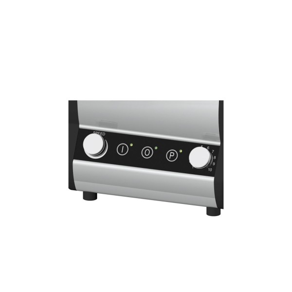 Επαγγελματικός αναμικτήρας σχεδιασμένος για να καλύπτει συγκεκριμένες απαιτήσεις μπαρ, εστιατορίων, καφετεριών κ.λπ. • Σώμα και πλαϊνά μηχανής από εξωθημένο αλουμίνιο από ABS. • Σύστημα στεγανοποίησης μεμβράνης για την αποτροπή εισόδου υγρών στο εσωτερικό της μηχανής. • Ισχυρός κινητήρας με εξαναγκασμένο αερισμό, για παρατεταμένη χρήση και βελτιωμένη ανθεκτικότητα. • Μαγνητικός μικροδιακόπτης ασφαλείας στο γυάλινο καπάκι χωρίς εξαναγκασμένη θέση. • Χειριστήρια σιλικονούχου μεμβράνης με κουμπί ON, OFF και συσκευή NVR. • Μεταβλητής ταχύτητας. • Τετράγωνο γυαλί 2 λίτρων κατασκευασμένο από άθραυστο διαφανές Tritan, διαβαθμισμένο σε λίτρα, γαλόνια Ηνωμένου Βασιλείου και ΗΠΑ. • Πολύ πρακτικό, με δυνατότητα έκχυσης σε 3 διαφορετικές κατευθύνσεις, ιδανικό για την παρασκευή κατεψυγμένων ποτών, smoothies με σιρόπια και συμπυκνώματα. • Γυάλινο καπάκι από καουτσούκ με βύσμα για την προσθήκη συστατικών. • Σώμα πλήμνης μετάδοσης από ανοξείδωτο χάλυβα. Μπορεί εύκολα να διαχωριστεί από το γυάλινο σώμα για εύκολο καθάρισμα. • Άξονας κοπής που υποστηρίζεται από ρουλεμάν για την αποφυγή υπερθέρμανσης και για την εγγύηση βελτιωμένης ανθεκτικότητας. • Αστεροειδής κίνηση από συσσωματωμένο χάλυβα υψηλής αντοχής. • Κόφτης 4 ακτίνων που προέρχεται από μία μόνο συμπίεση σκληρυμένου χάλυβα για λεπίδες κατάλληλες επίσης για θρυμματισμό πάγου. • Το τετράγωνο ποτήρι σχεδιάστηκε για βέλτιστη λειτουργία με μεγάλες ποσότητες πάγου, ακόμη και ξηρού τύπου. • Πρακτικό και λειτουργικό: το προϊόν μπορεί να χυθεί σε 3 διαφορετικές κατευθύνσεις. • Ιδανικό για την παρασκευή κατεψυγμένων ποτών, smoothies με σιρόπια και συμπυκνώματα. • Κινητήρας πολλαπλών σημείων από ανοξείδωτο ατσάλι. Άλλες εκδόσεις: • Έκδοση 1 ή 2 ποτηριών • Χρονοδιακόπτης: χρονοδιακόπτης χειροκίνητης ρύθμισης και αυτόματη απενεργοποίηση της μηχανής • Επιπλέον: ηλεκτρονική έκδοση με 9 προκαθορισμένα προγράμματα.