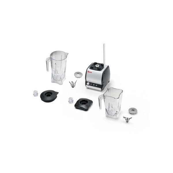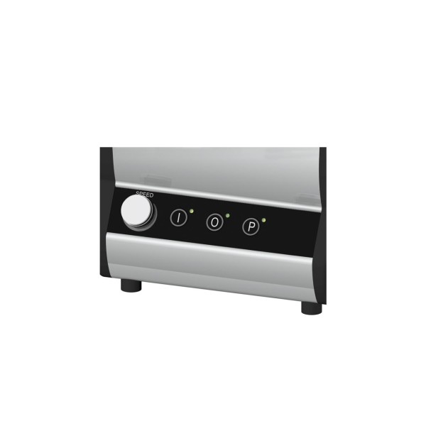 Επαγγελματικός αναμικτήρας σχεδιασμένος για να καλύπτει συγκεκριμένες απαιτήσεις μπαρ, εστιατορίων, καφετεριών κ.λπ. • Σώμα και πλαϊνά μηχανής από εξωθημένο αλουμίνιο από ABS. • Σύστημα στεγανοποίησης μεμβράνης για την αποτροπή εισόδου υγρών στη μηχανή. • Ισχυρός κινητήρας με εξαναγκασμένο αερισμό, για παρατεταμένη χρήση και βελτιωμένη ανθεκτικότητα. • Μαγνητικός μικροδιακόπτης ασφαλείας στο γυάλινο καπάκι χωρίς εξαναγκασμένη θέση. • Χειριστήρια σιλικονούχου μεμβράνης με κουμπί ON, OFF και συσκευή NVR. • Ρυθμιστής ταχύτητας. • Στρογγυλό ποτήρι 2 λίτρων, ιδανικό για μιλκσέικ και κατεψυγμένα ποτά, κατασκευασμένο από διαφανές, άφθαρτο Tritan, διαβαθμισμένο σε λίτρα, γαλόνια Ηνωμένου Βασιλείου και ΗΠΑ. • Γυάλινο καπάκι από καουτσούκ με βύσμα για την προσθήκη υλικών. • Σώμα πλήμνης μετάδοσης από ανοξείδωτο χάλυβα. Μπορεί εύκολα να διαχωριστεί από το γυάλινο σώμα για εύκολο καθάρισμα. • Άξονας κοπής που υποστηρίζεται από ρουλεμάν για την αποφυγή υπερθέρμανσης και για την εγγύηση βελτιωμένης ανθεκτικότητας. • Αστεροειδής κίνηση από συσσωματωμένο χάλυβα υψηλής αντοχής. • Κόφτης 4 ακτίνων που προέρχεται από μία μόνο συμπίεση σκληρυμένου χάλυβα για λεπίδες κατάλληλες επίσης για θρυμματισμό πάγου. Προαιρετικά: • Γυαλί από ανοξείδωτο ατσάλι Άλλες εκδόσεις: • Έκδοση με 1 ή 2 γυάλινα μέρη • Χρονοδιακόπτης: χρονοδιακόπτης χειροκίνητης ρύθμισης και αυτόματη απενεργοποίηση της μηχανής • Επιπλέον: ηλεκτρονική έκδοση με 9 προκαθορισμένα προγράμματα επεξεργασίας.