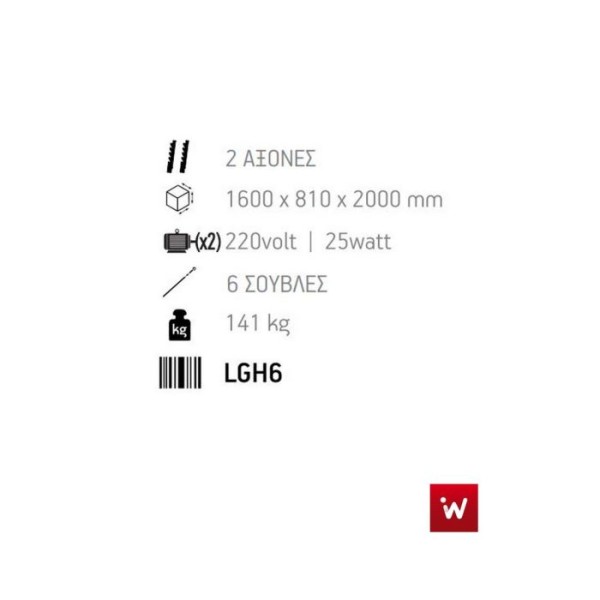Επαγγελματική ανοξείδωτη επιδαπέδια ψησταριά κάρβουνου με σούβλες δύο ατέρμονες και χοάνη VKN-LGH6 160χ81χ200 εκ