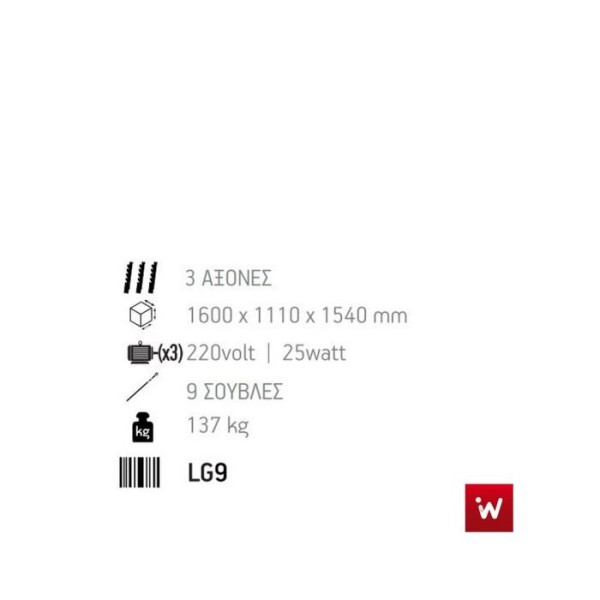 - ΑΞΟΝΕΣ τρείς ατέρμονες με πέντε θέσεις και με εννιά σούβλες
