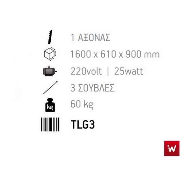 Επαγγελματική ανοξείδωτη επιτραπέζια ψησταριά κάρβουνου με σούβλες ένα ατέρμονα VKN-TLG3 160χ61χ90 εκ