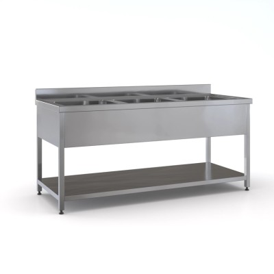 Επαγγελματική ανοξείδωτη λάντζα ανοιχτή 120χ70χ87 εκ με 1 γούρνα 50χ50χ30 ID-LANA120.1