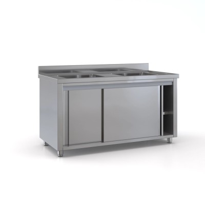 Επαγγελματική ανοξείδωτη λάντζα κλειστή 120χ70χ87 με 2 γούρνες 50χ50χ30 εκ ID-LANK120.2