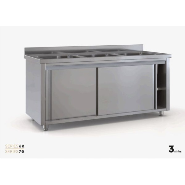 Επαγγελματική ανοξείδωτη λάντζα κλειστή 190χ70χ87 με 3 γούρνες 50χ50χ30 εκ ID-LANK190.3
