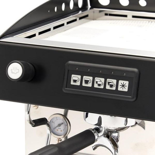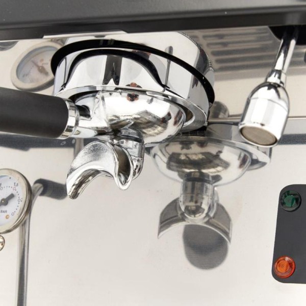 Αυτή η κομψή μηχανή εσπρέσο λειτουργεί εύκολα με τα βολικά πλήκτρα αφής. Υπάρχουν περιστρεφόμενοι σωλήνες από ανοξείδωτο ατσάλι για το νερό και τον ατμό. Η καφετιέρα είναι εξοπλισμένη με ένα μονό έμβολο βαρέως τύπου, ένα στόμιο και ένα φίλτρο πορτατίφ. Το νερό τροφοδοτείται αυτόματα στη μηχανή και υπάρχει απευθείας έγχυση νερού από το μπόιλερ στον καφέ. Σε περίπτωση χαμηλής πίεσης νερού, η αντλία απενεργοποιείται αυτόματα. Επιπλέον, όταν η στάθμη του νερού είναι χαμηλή, ανάβει μια προειδοποιητική λυχνία. Η μηχανή είναι επίσης εξοπλισμένη με βαλβίδα υπερπίεσης, ενώ ο λέβητας διαθέτει βαλβίδα κατά του κενού. Αυτή η καφετιέρα στέκεται σε τέσσερα λαστιχένια πόδια ρυθμιζόμενου ύψους για μεγαλύτερη σταθερότητα.