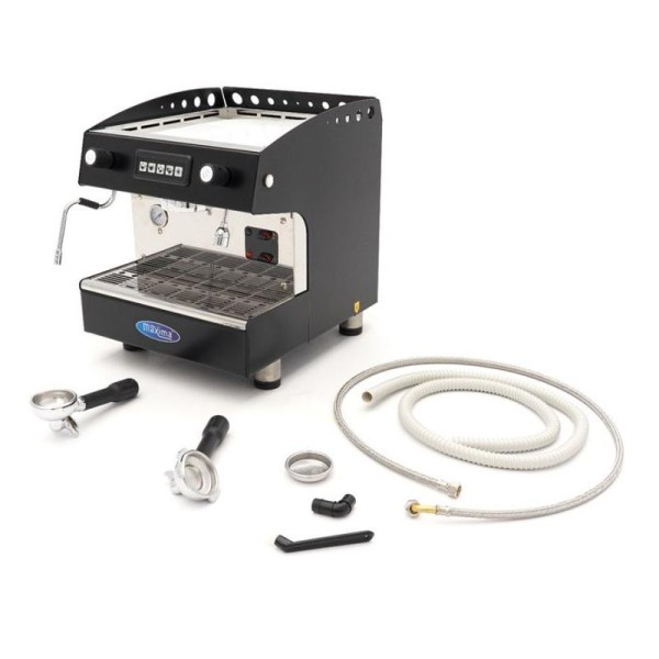Αυτή η μικρή μηχανή καφέ εσπρέσο είναι ένα πλεονέκτημα για κάθε επιχείρηση εστίασης. Δεν διαθέτει μόνο μια σειρά από χαρακτηριστικά, αλλά είναι επίσης μια πολύ αξιόπιστη μηχανή. Έχει πολυτελή και κομψή εμφάνιση χάρη στο όμορφο μεταλλικό περίβλημα με μαύρη επίστρωση. Διαθέτει λέβητα 3 λίτρων και μπορεί να παρασκευάσει έως και 180 φλιτζάνια την ώρα. Είναι επίσης εξοπλισμένη με μία μόνο κεφαλή με θάλαμο άμεσης προ-έγχυσης. Υπάρχουν τέσσερις διαθέσιμες επιλογές δοσολογίας εσπρέσο: εσπρέσο, διπλός εσπρέσο, δύο εσπρέσο και δύο διπλοί εσπρέσο. Το φίλτρο στάγδην είναι κατασκευασμένο από χρώμιο και ο ευρύχωρος δίσκος στάγδην είναι κατασκευασμένος από ανοξείδωτο ατσάλι.