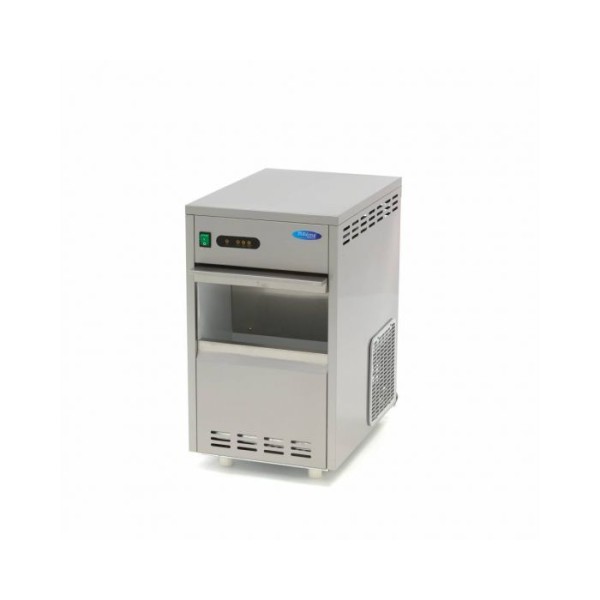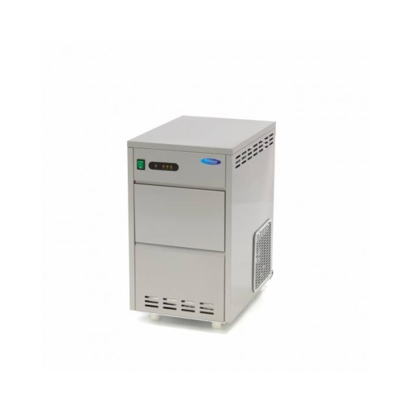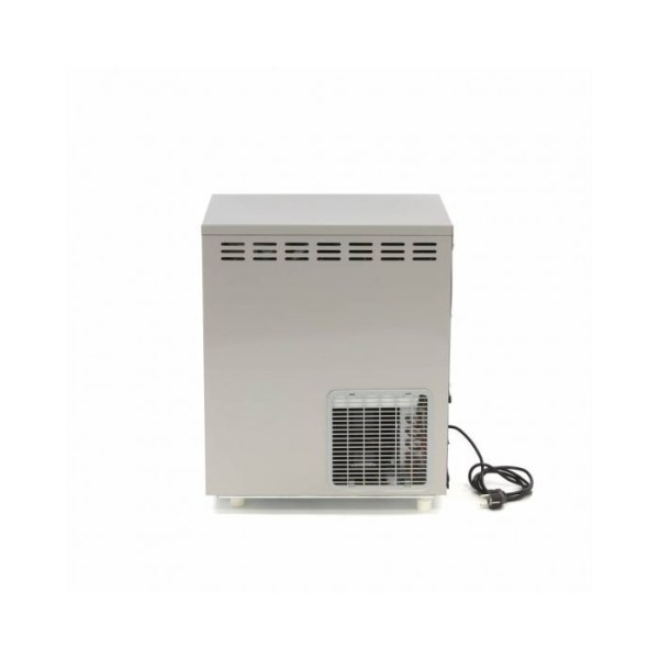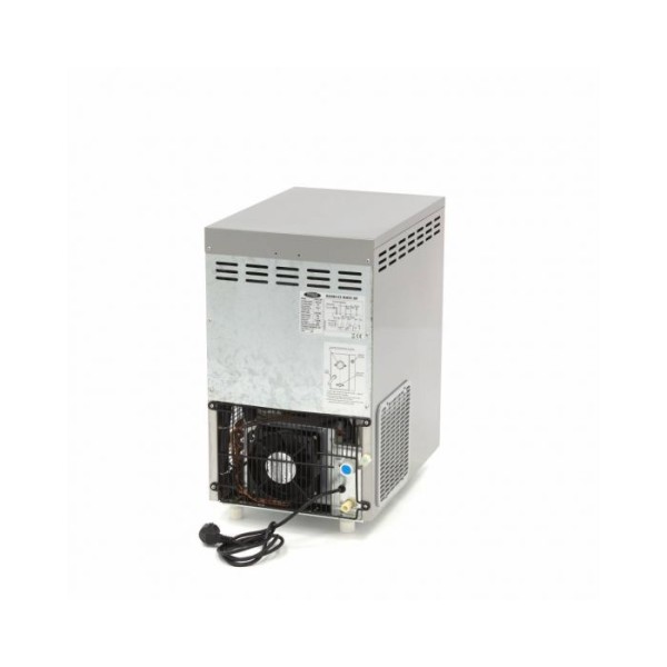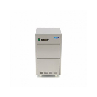 Μια καλά μονωμένη και υγιεινή παγομηχανή εξασφαλίζει παγάκια καλής ποιότητας. Για να διασφαλιστεί η καλή ασφάλεια εργασίας, η συσκευή είναι εξοπλισμένη με προστασία υπερφόρτωσης. Οι παρεχόμενοι εύκαμπτοι σωλήνες μπορούν να χρησιμοποιηθούν για τη σύνδεση της μηχανής με παροχή πόσιμου νερού. Στη συνέχεια, η δεξαμενή νερού γεμίζει αυτόματα, ώστε η παγομηχανή να μπορεί να παράγει συνεχώς νέο παγάκι σε νιφάδες, χωρίς να απαιτείται χειρωνακτική εργασία. Περιλαμβάνεται επίσης μια εύχρηστη σέσουλα πάγου. Η παγομηχανή δεν είναι εξοπλισμένη με αντλία αποστράγγισης. Ο σωλήνας αποστράγγισης πρέπει να συνδεθεί χαμηλότερα από την έξοδο της μηχανής. Για την ψύξη της συσκευής χρησιμοποιείται ένα αποτελεσματικό σύστημα ψύξης με ψυκτικό μέσο R290. Διαθέτει επίσης πίνακα ελέγχου με προειδοποιητικές λυχνίες που υποδεικνύουν τυχόν δυσλειτουργίες, γεμάτη δεξαμενή αποθήκευσης και χαμηλή στάθμη νερού.