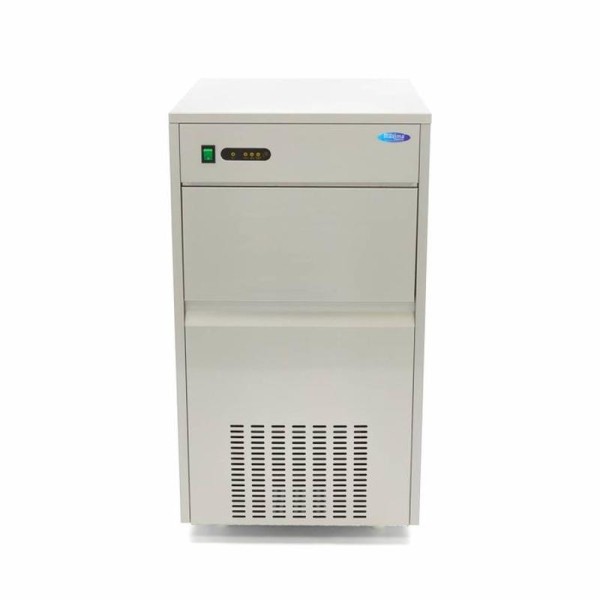 Αυτή η παγομηχανή είναι αερόψυκτη, καθιστώντας την κατάλληλη για χρήση σε εσωτερικούς χώρους καθώς και σε χώρους που δεν είναι πολύ ζεστοί. Χάρη στην καλή μόνωση και την υγιεινή, η συσκευή παράγει ομοιόμορφο, υψηλής ποιότητας παγάκι. Για να βεβαιωθείτε ότι η παγομηχανή δεν υπερφορτώνεται, είναι επίσης εξοπλισμένη με προστασία υπερφόρτωσης. Διαθέτει δύο σωλήνες παροχής, ώστε να μπορεί να συνδεθεί με σύνδεση πόσιμου νερού, ώστε να τροφοδοτείται αυτόματα με νερό για νέα παγάκια. Η παγομηχανή δεν είναι εξοπλισμένη με αντλία αποστράγγισης. Ο εύκαμπτος σωλήνας αποστράγγισης πρέπει να συνδεθεί χαμηλότερα από την έξοδο της μηχανής. Αυτή η παγομηχανή διαθέτει ένα εξαιρετικά αποδοτικό σύστημα ψύξης, που χρησιμοποιεί το ψυκτικό μέσο R290. Περιλαμβάνει επίσης μια σέσουλα πάγου που σας επιτρέπει να αφαιρείτε τα παγάκια με υγιεινό τρόπο από τη μηχανή. Ο πίνακας ελέγχου διαθέτει μια σειρά από προειδοποιητικές λυχνίες, ώστε να γνωρίζετε ακριβώς τι ενέργειες πρέπει να κάνετε και πότε, για να διασφαλίσετε ότι η παγομηχανή μπορεί να συνεχίσει τη δουλειά της.