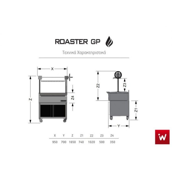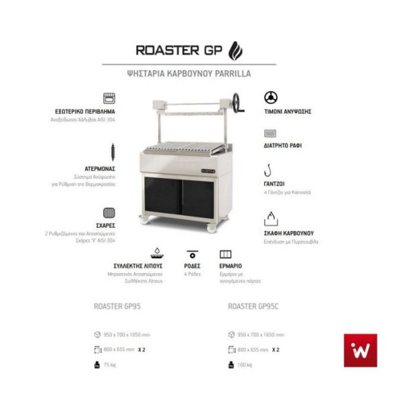 Επαγγελματική ψησταριά PARRILA κάρβουνου επιτραπέζια με ανύψωση VKN-ROASTER GP95 115χ70χ90 εκ